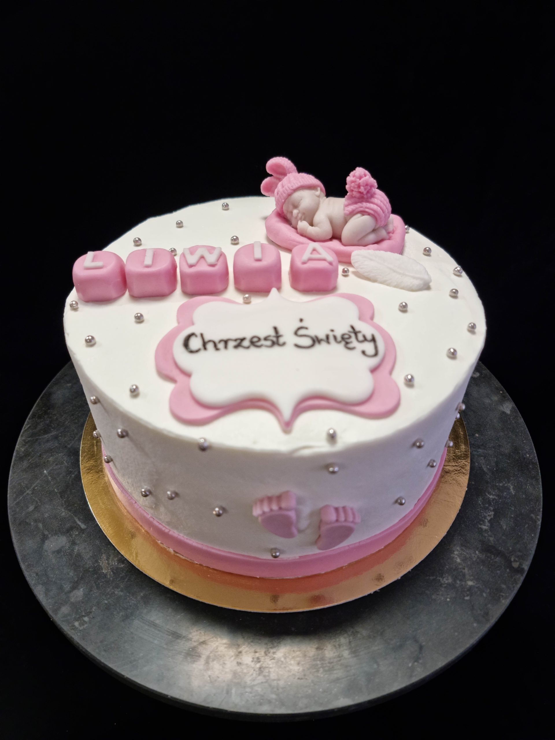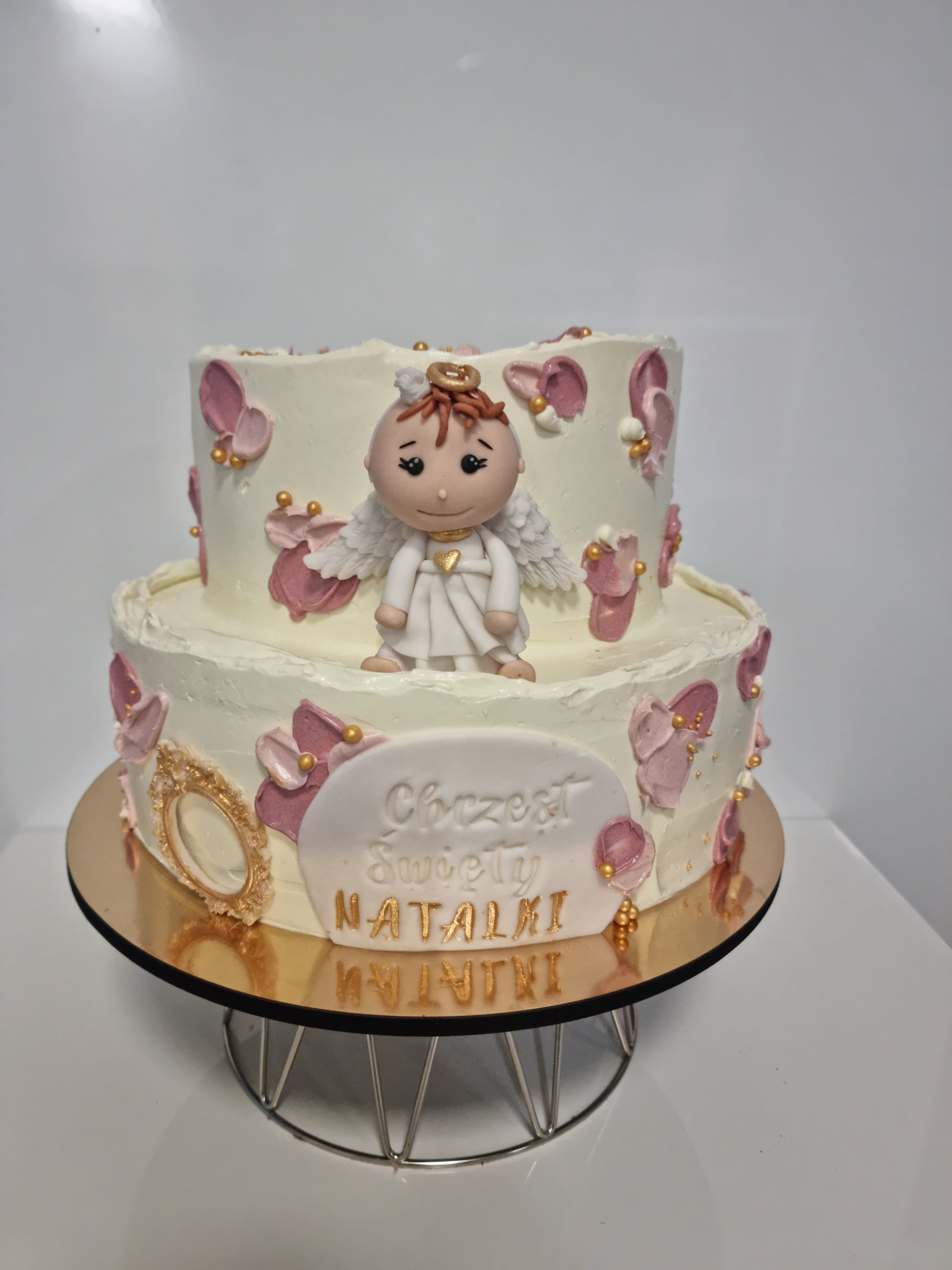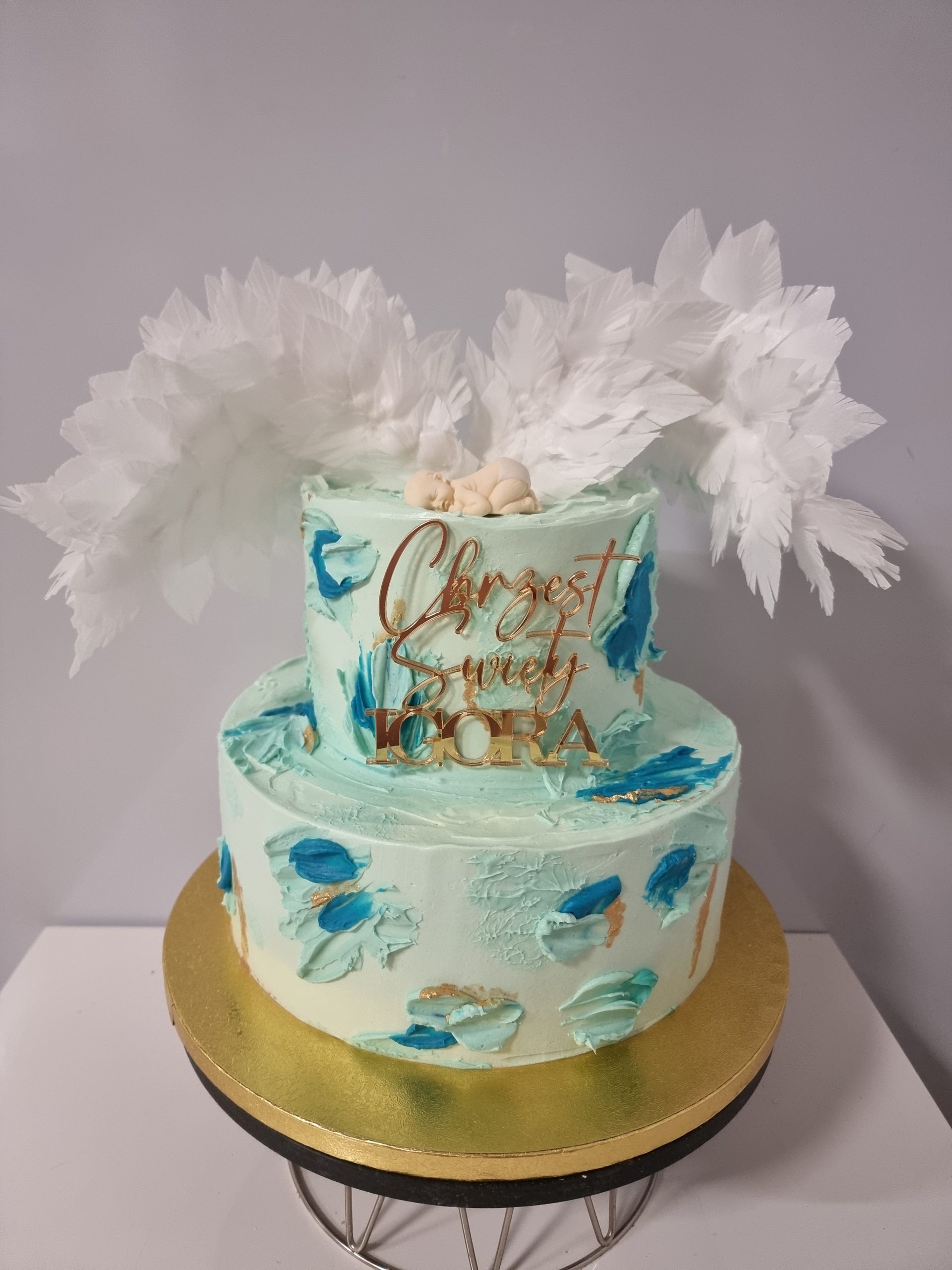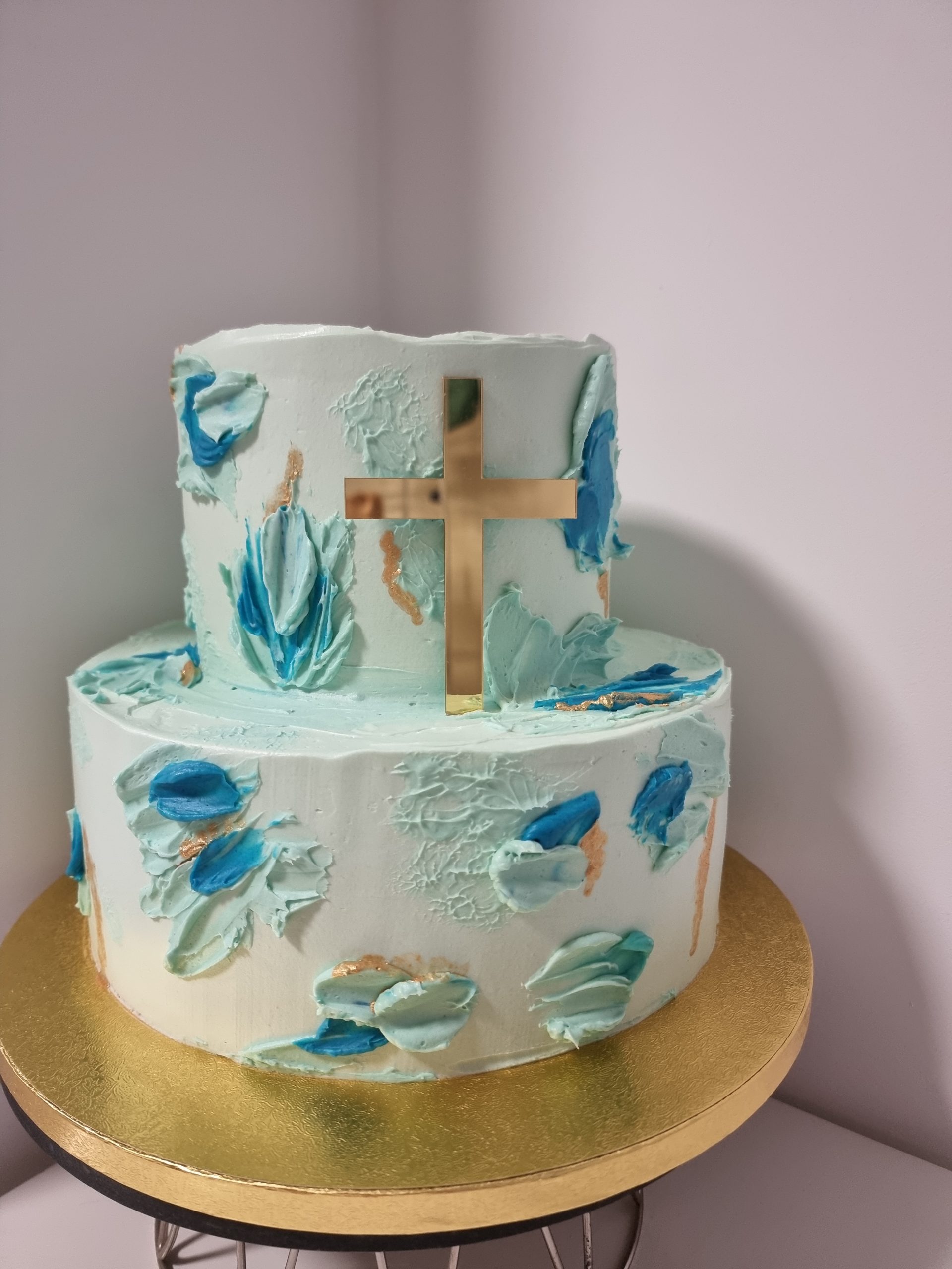 Dopasuj tort do stylu uroczystości! Proponujemy delikatne odcienie różu i niebieskiego, które podkreślą wyjątkowość tego dnia.