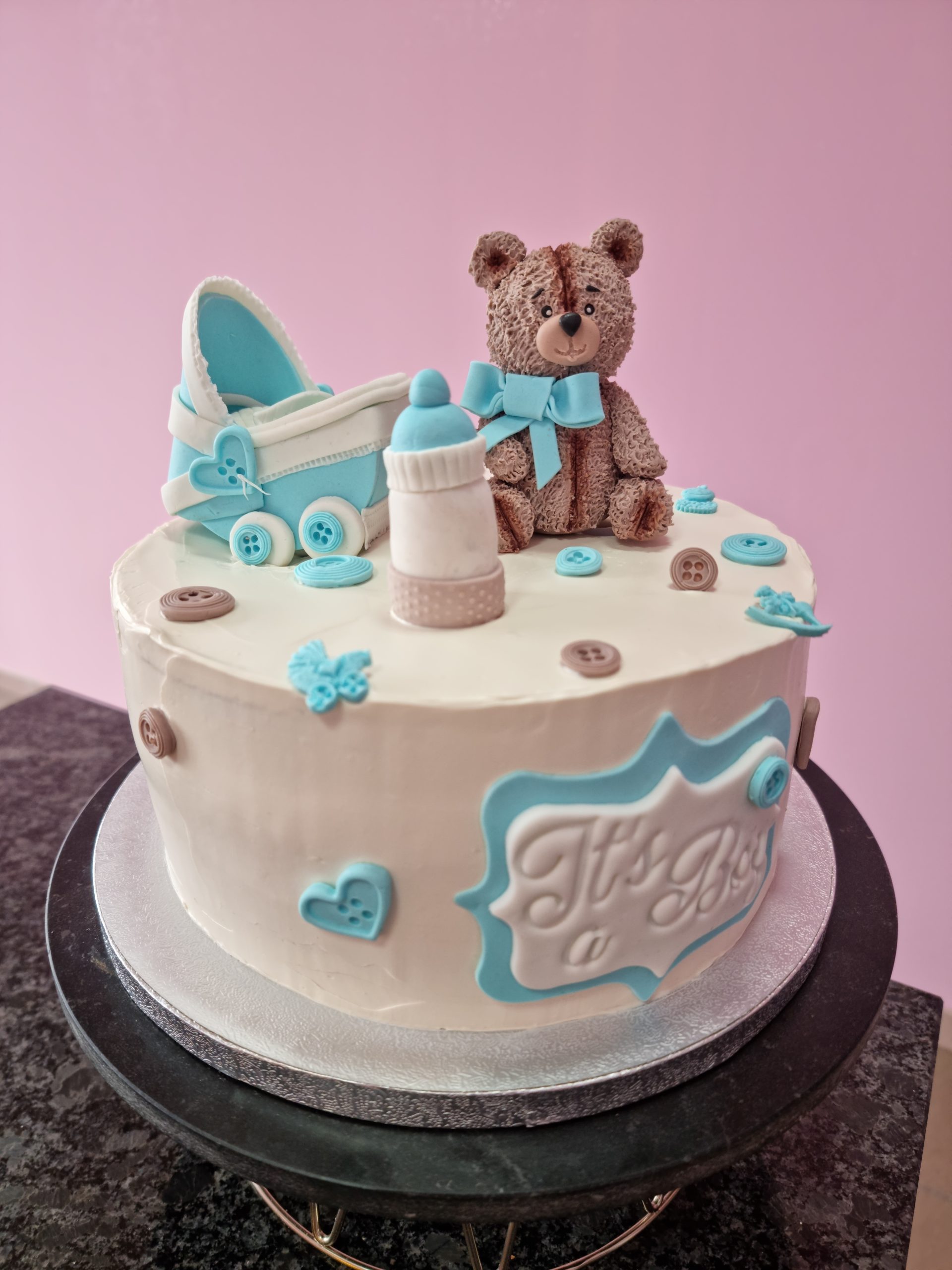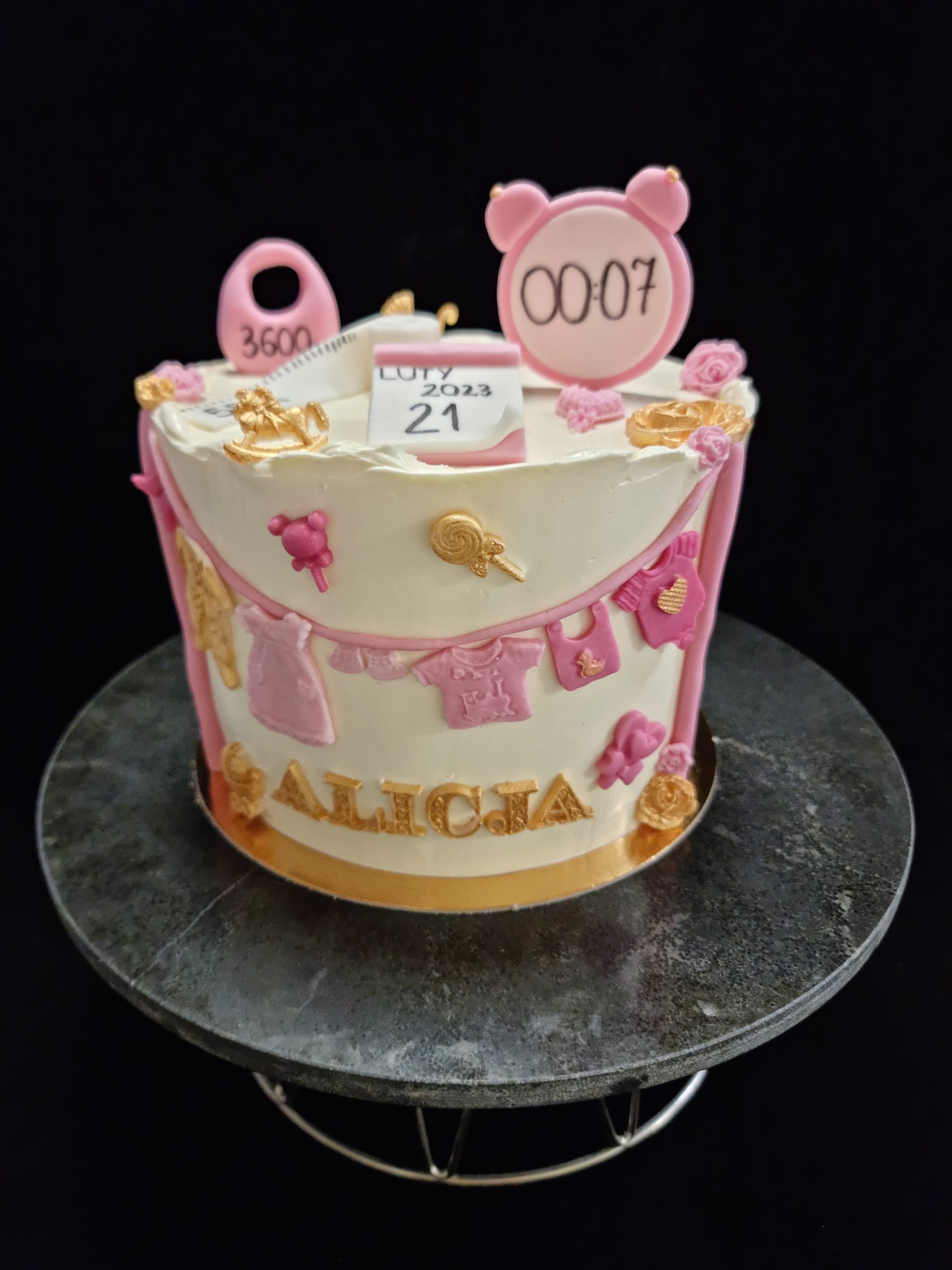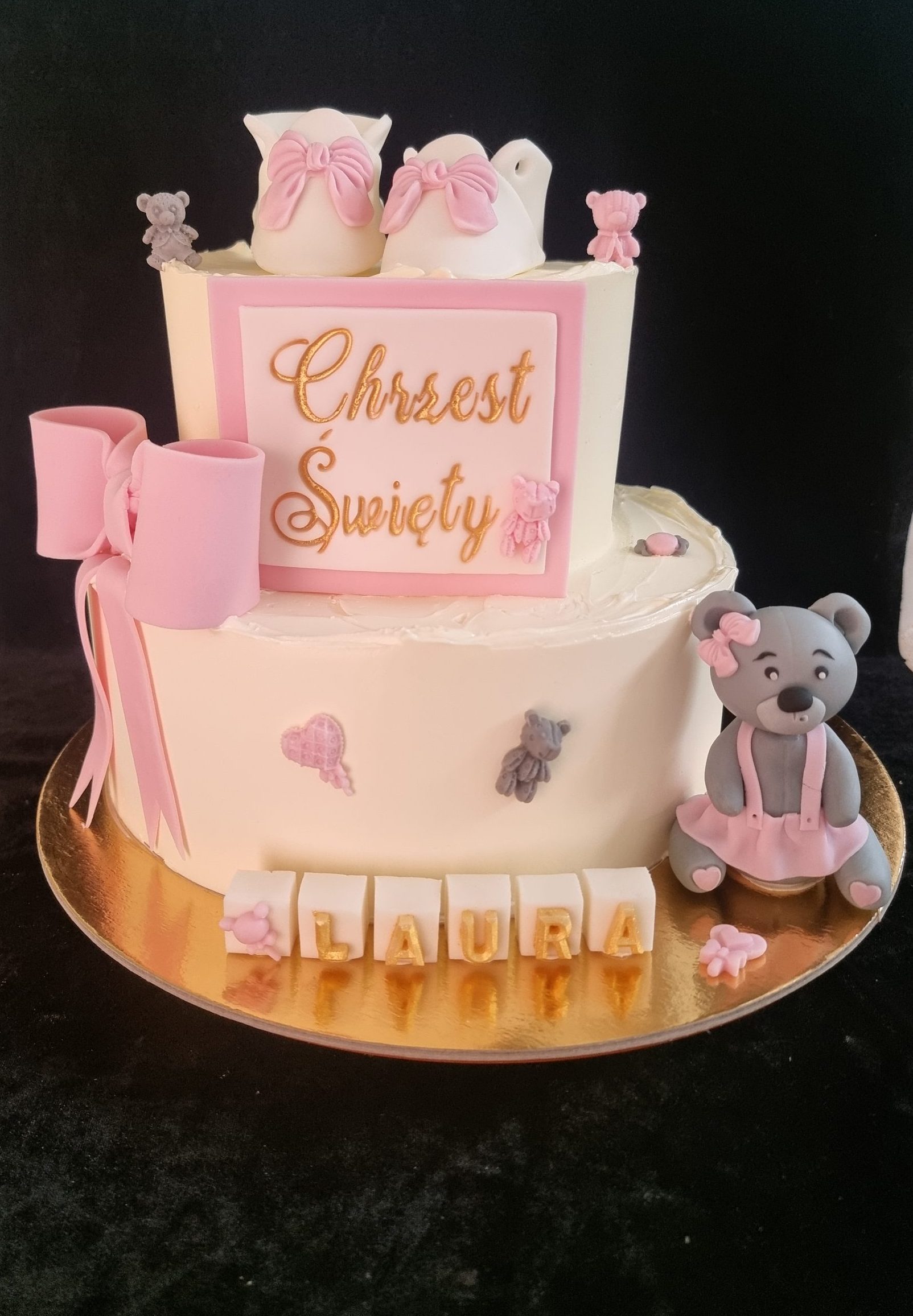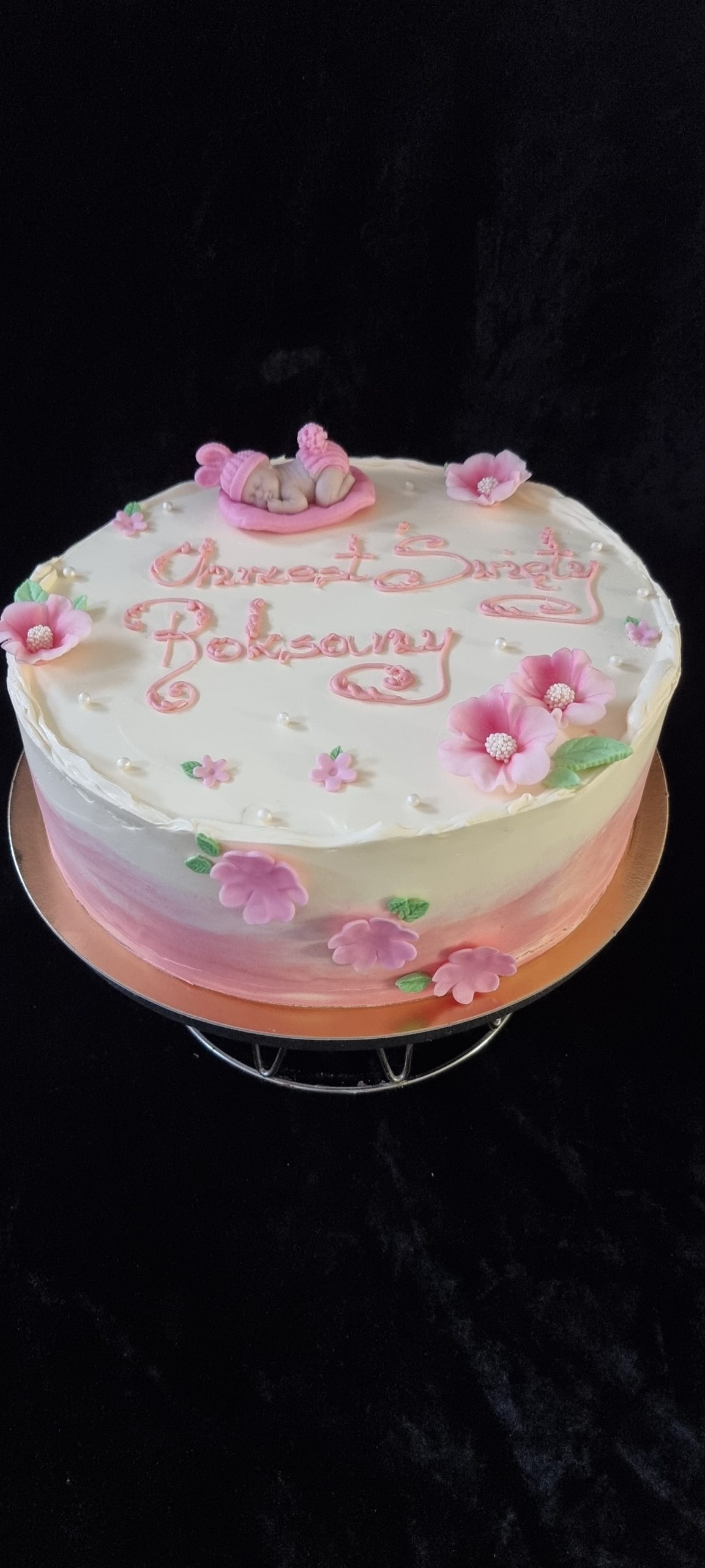 Dopasuj tort do stylu uroczystości! Proponujemy delikatne odcienie różu i niebieskiego, które podkreślą wyjątkowość tego dnia.