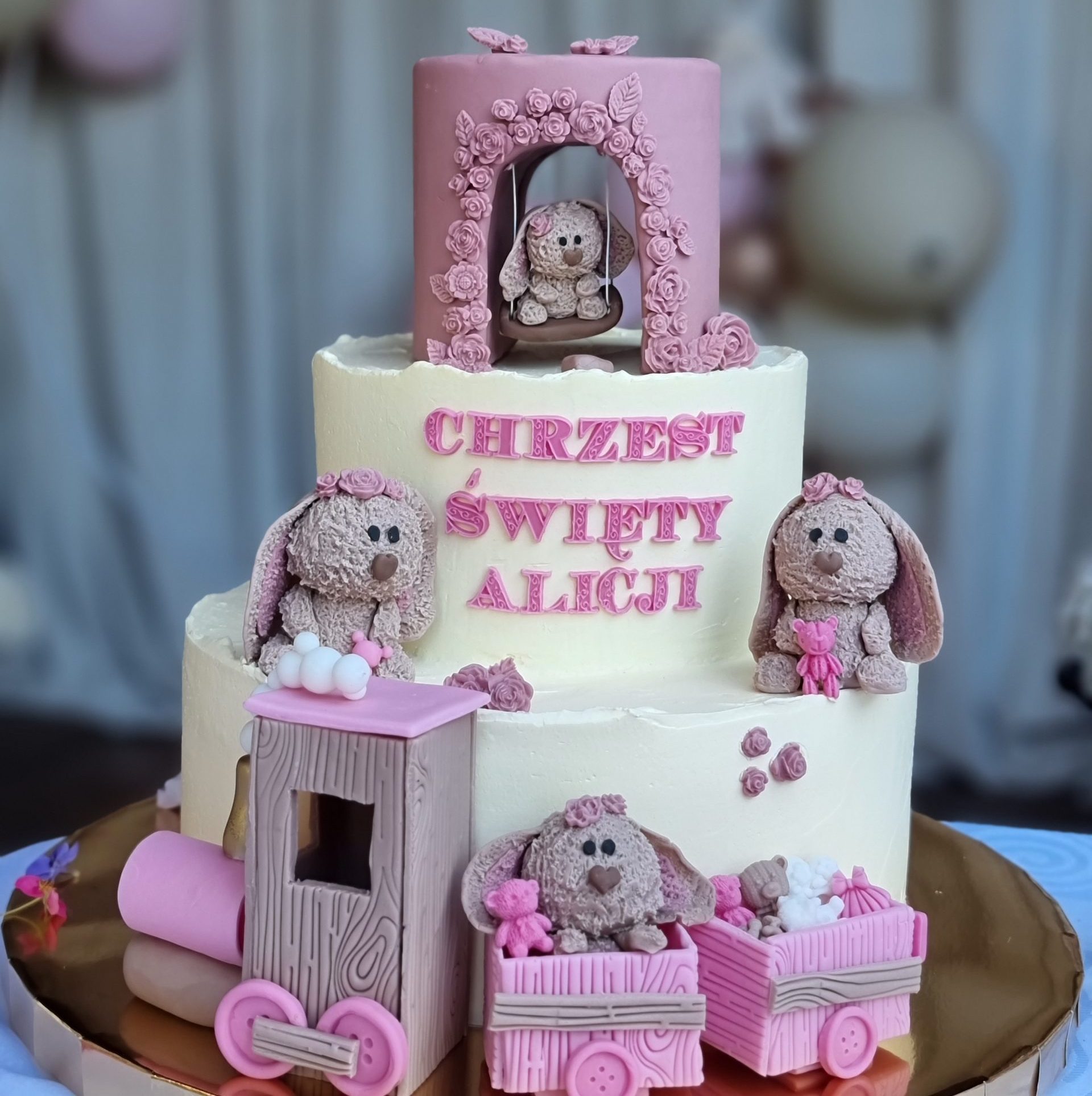 Każdy tort może być ozdobiony uroczą figurką, np. aniołka, misia, które dodadzą mu wyjątkowego charakteru. Idealne zarówno dla dziewczynki, jak i chłopca.